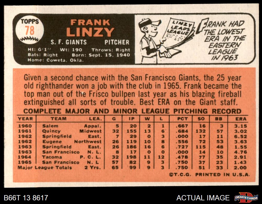 1966 Topps #78 Frank Linzy 4 - VG/EX