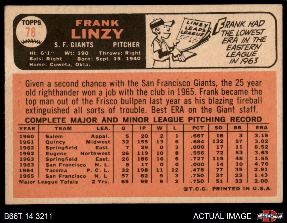 1966 Topps #78 Frank Linzy 4.5 - VG/EX+
