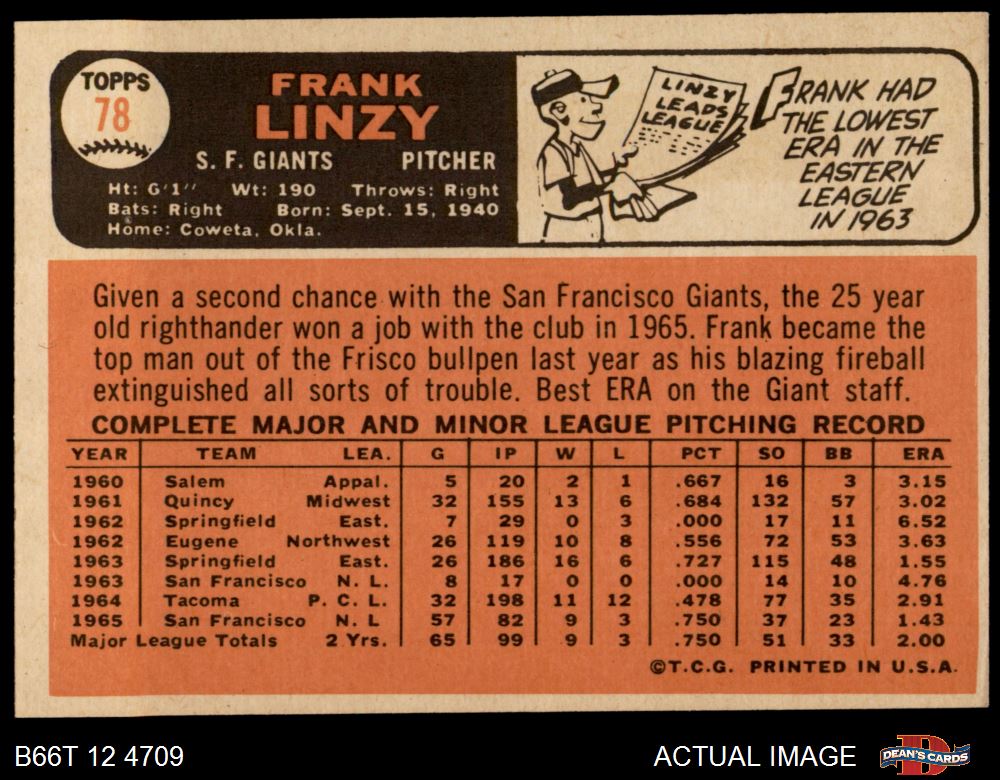 1966 Topps #78 Frank Linzy 6 - EX/MT