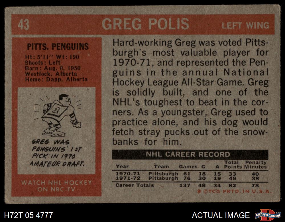 1972 Topps #43 Greg Polis 1.5 - FAIR