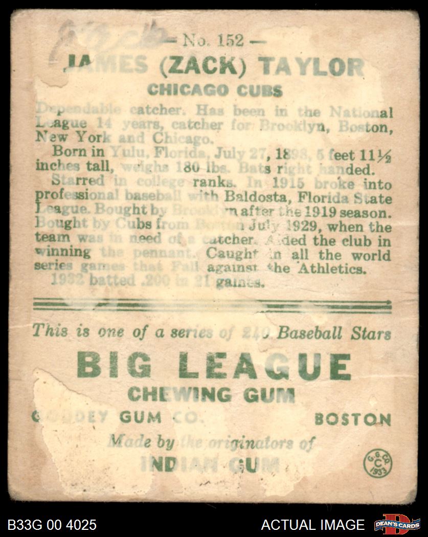 1933 Goudey #152 Zack Taylor 1 - POOR
