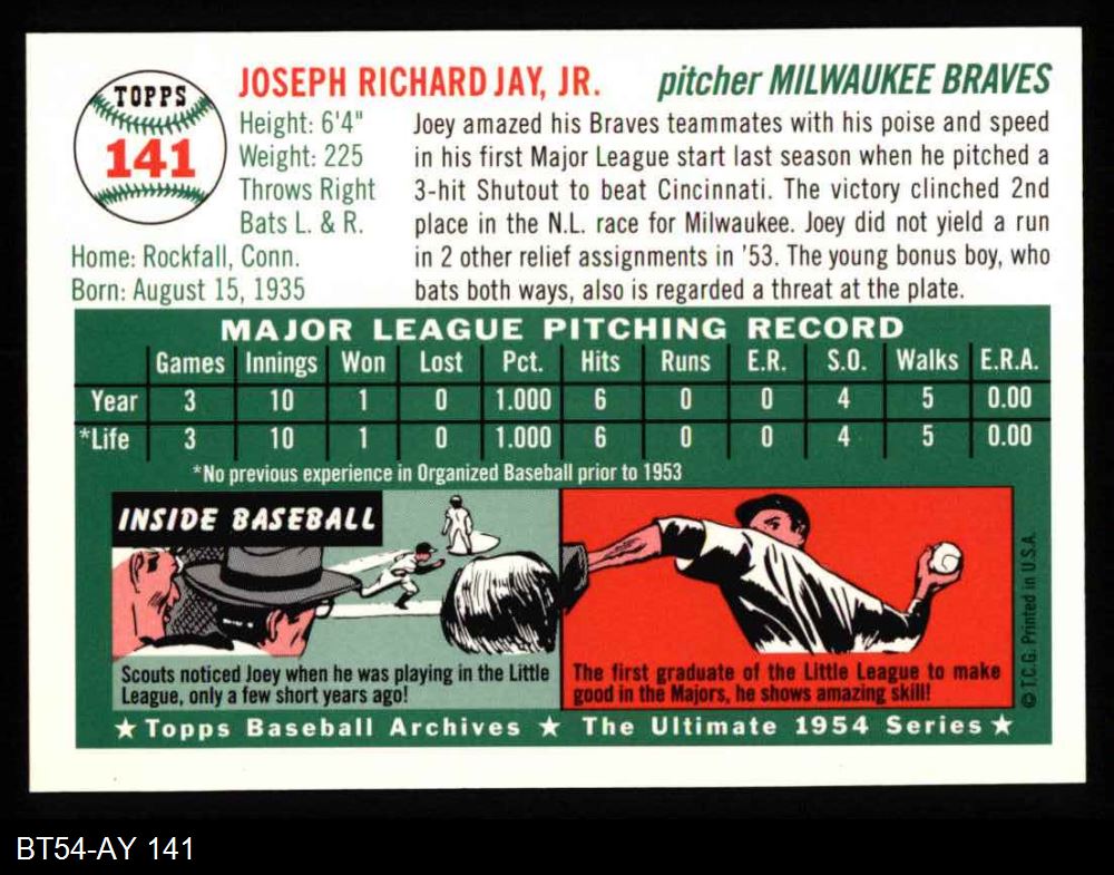 1954 Topps Archives #141 Joey Jay