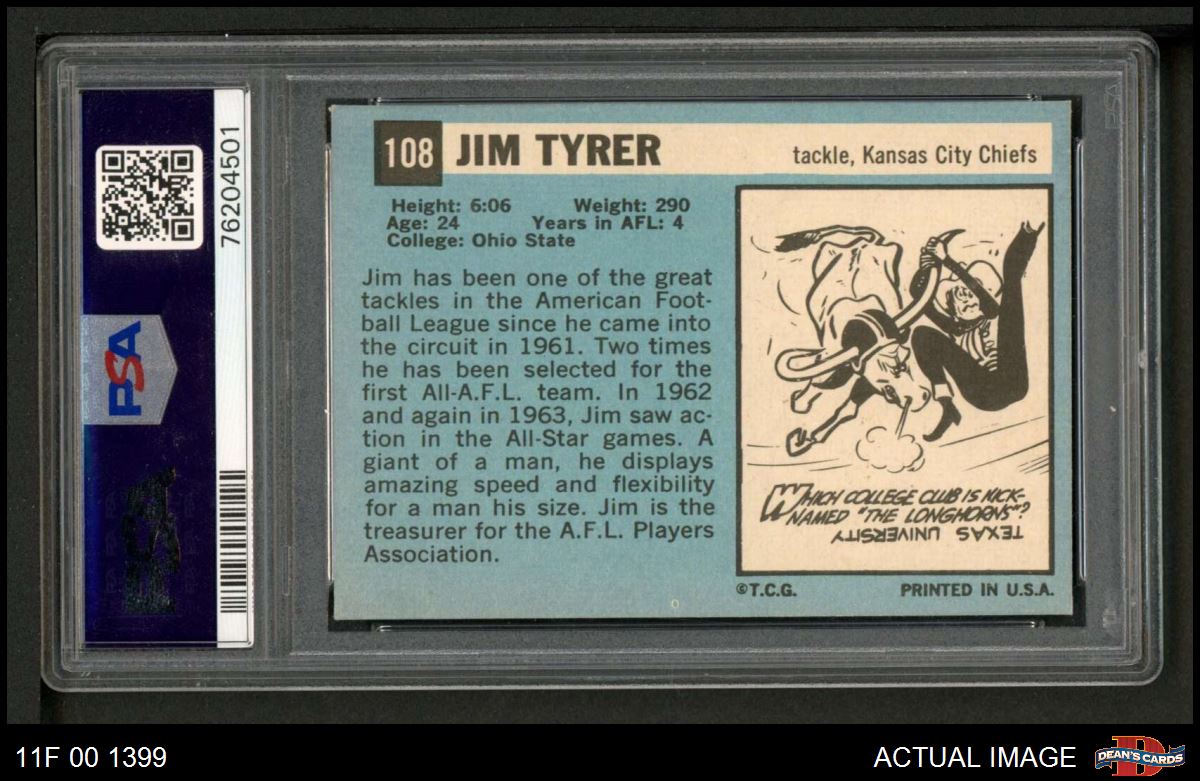 1964 Topps #108 Jim Tyrer PSA 7 - NM