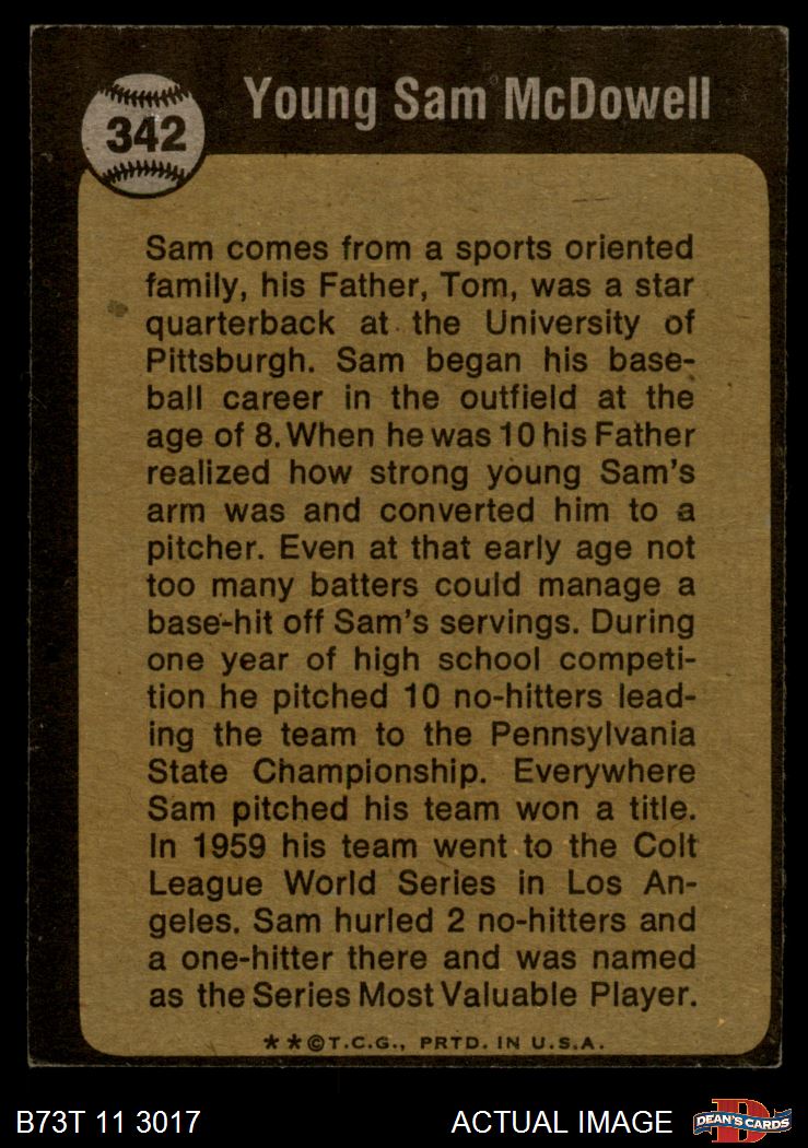 1973 Topps #342 - Sam McDowell Boyhood Photo 3 - VG