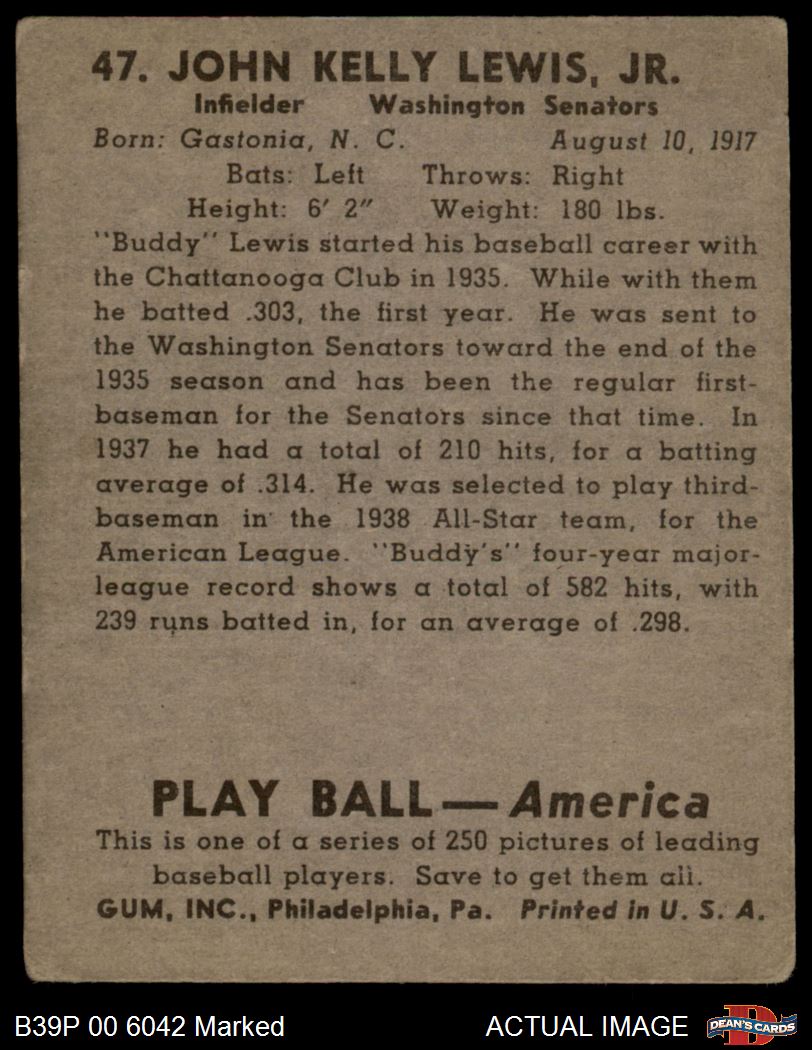 1939 Play Ball #47 Buddy Lewis Front Thumbnail