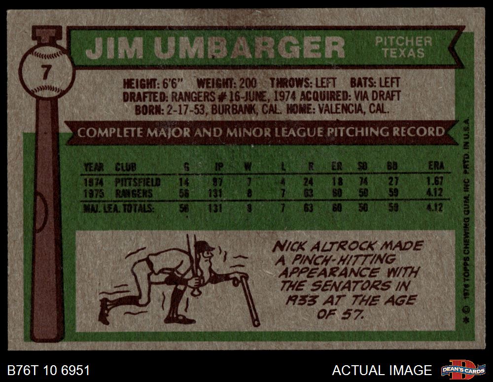 1976 Topps #7 Jim Umbarger 4 - VG/EX