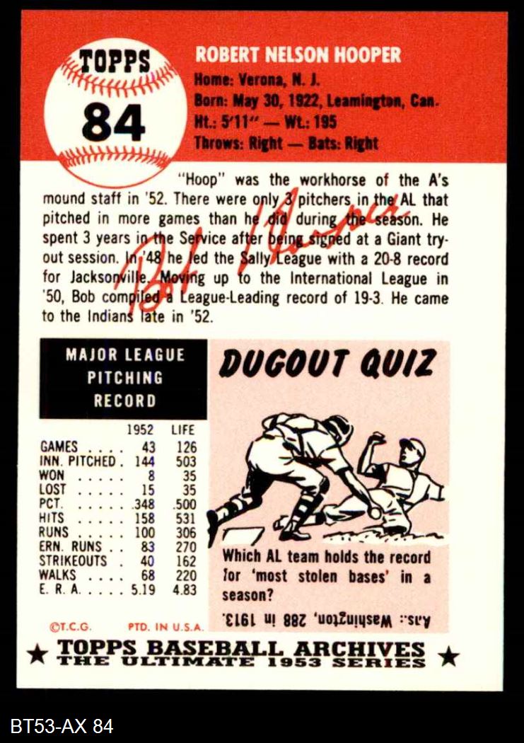 1953 Topps Archives #84 Bob Hooper 8 - NM/MT