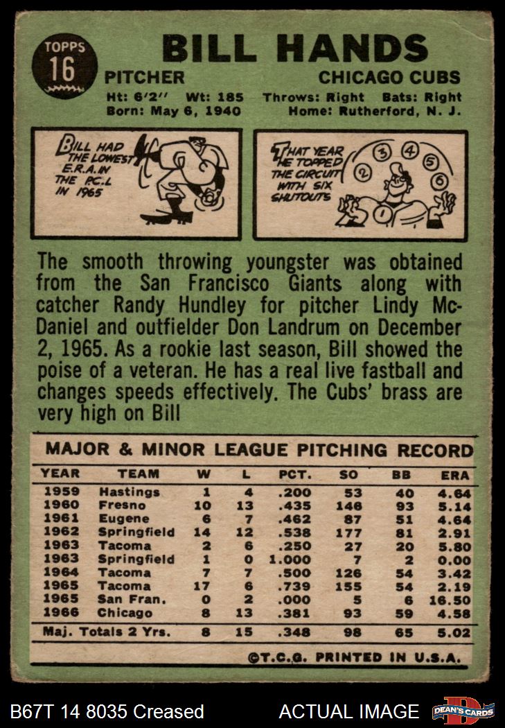1967 Topps #16 Bill Hands 2 - GOOD