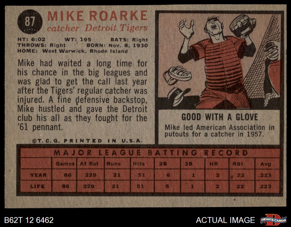 1962 Topps #87 Mike Roarke 3 - VG
