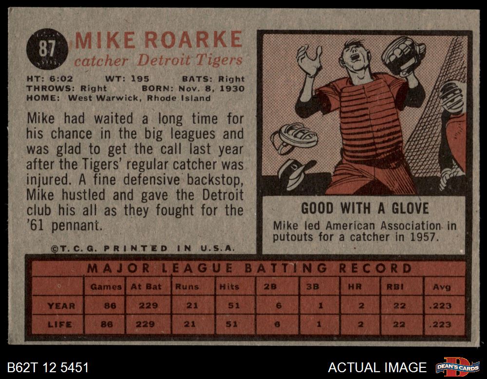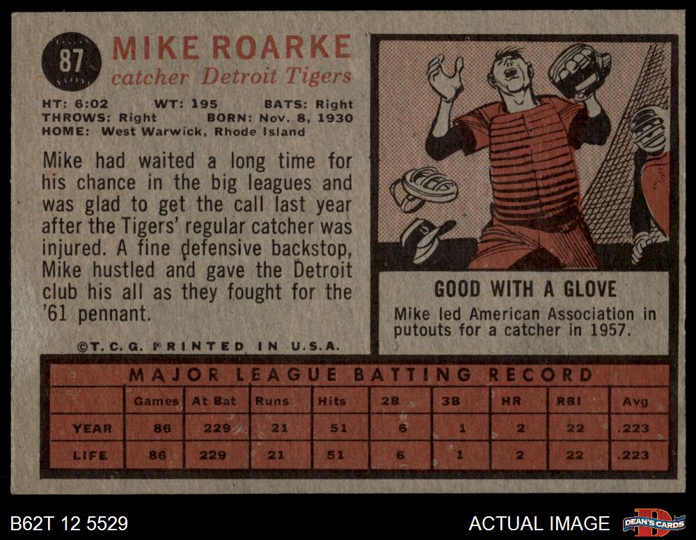 1962 Topps #87 Mike Roarke 4 - VG/EX