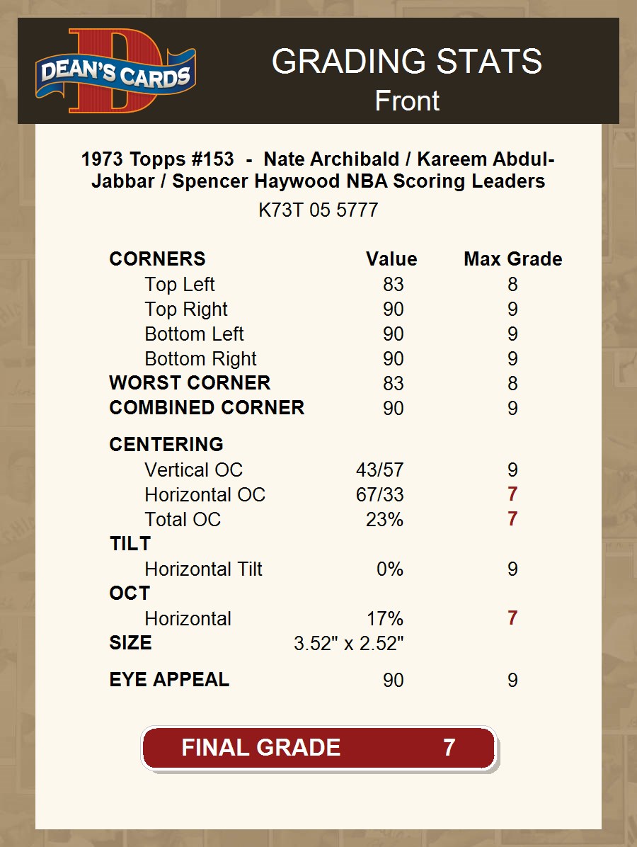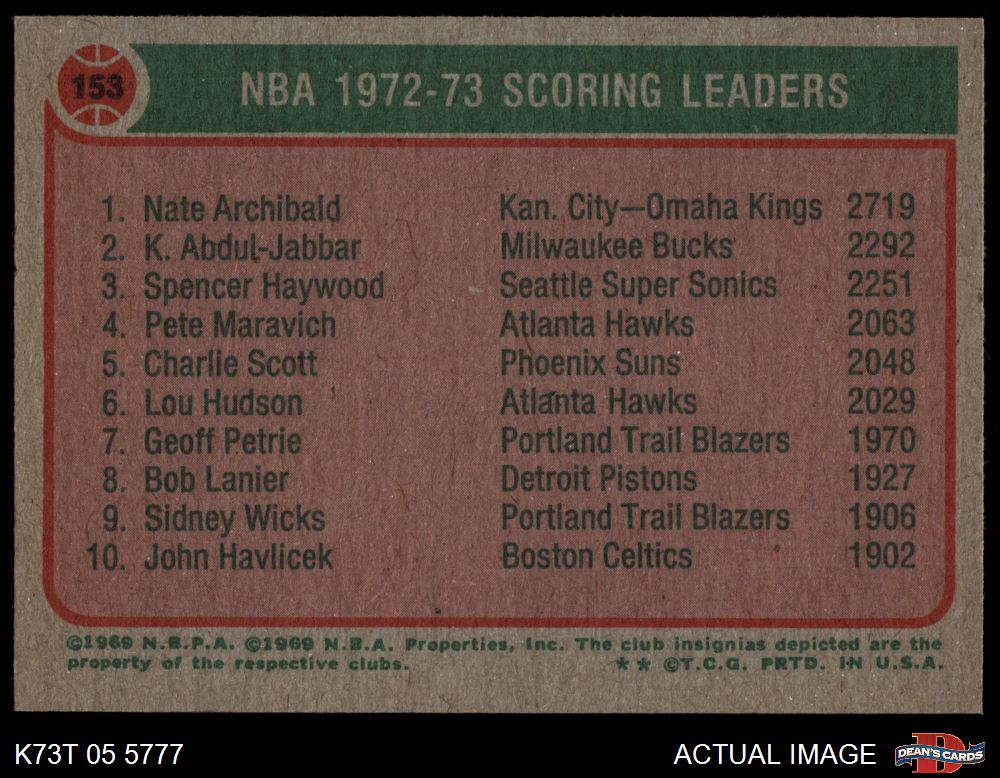 1973 Topps #153 - Nate Archibald / Kareem Abdul-Jabbar / Spencer Haywood NBA Scoring Leaders 7 - NM