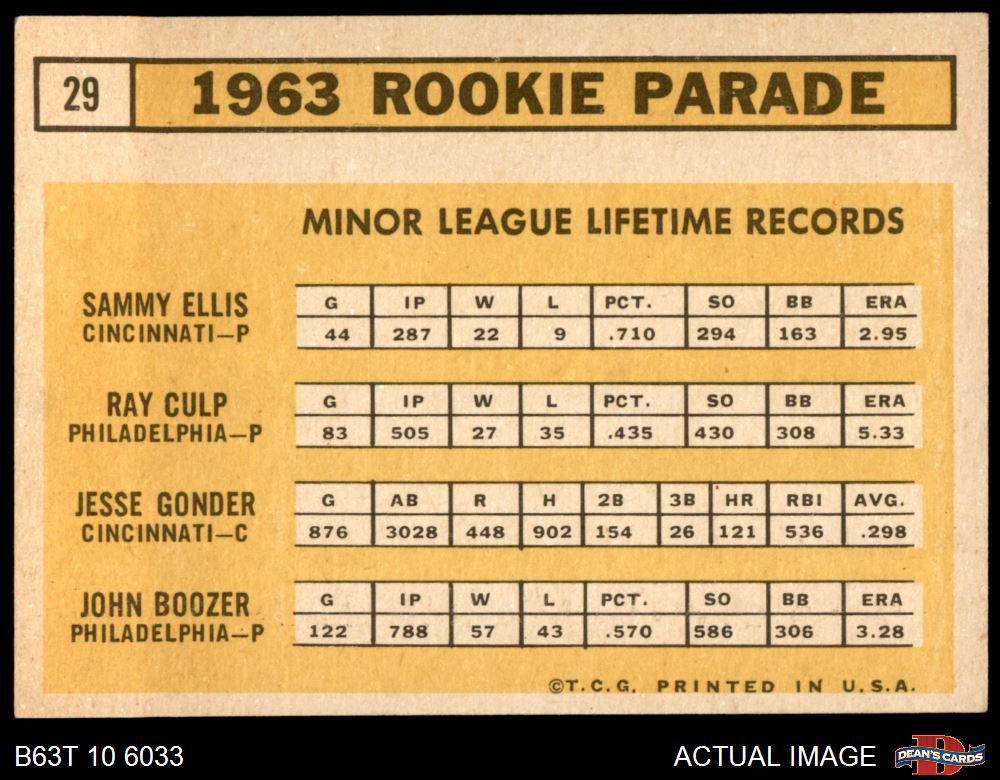 1963 Topps #29 III - Sammy Ellis / Ray Culp / John Boozer / Jesse Gonder Rookie Stars 7 - NM