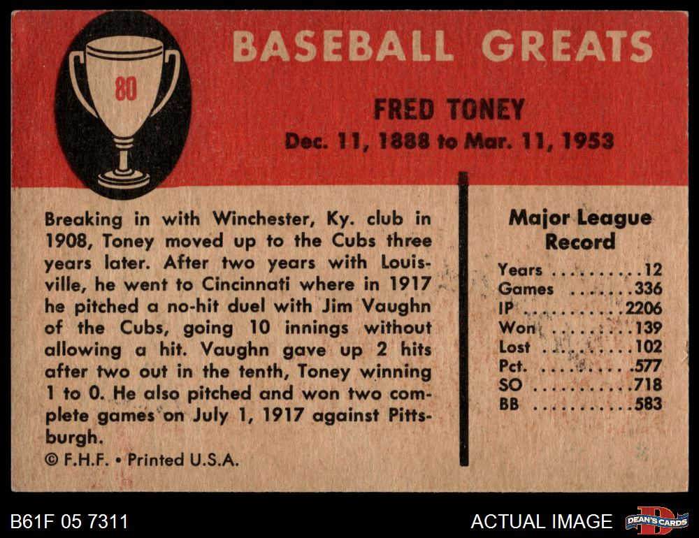 1961 Fleer #80 Fred Toney