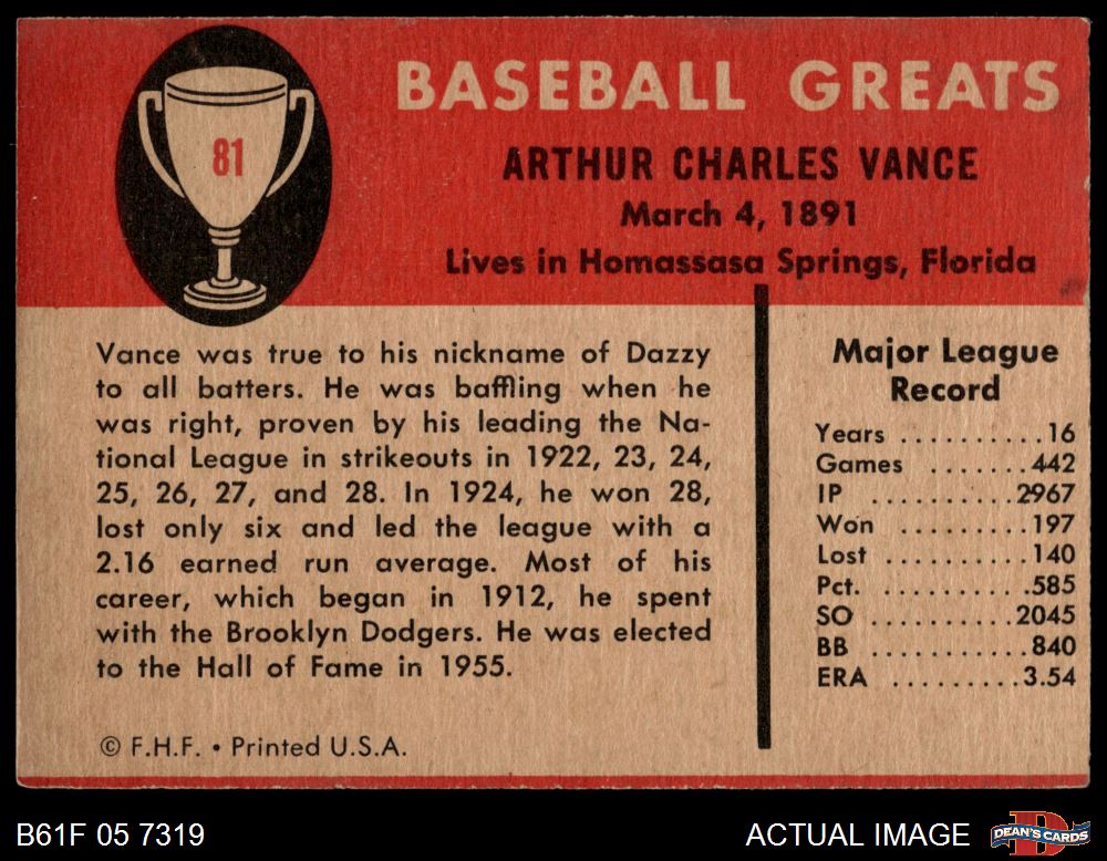 1961 Fleer #81 Dazzy Vance 4 - VG/EX