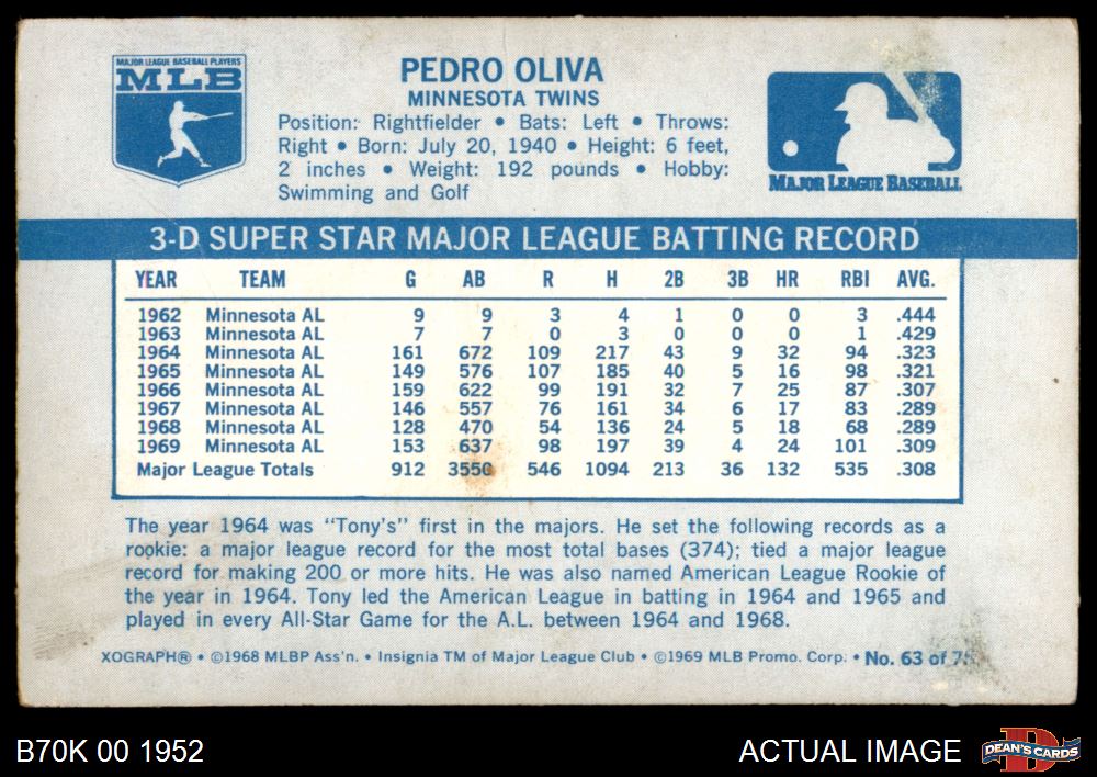 1970 Kellogg's #63 Tony Oliva 2 - GOOD