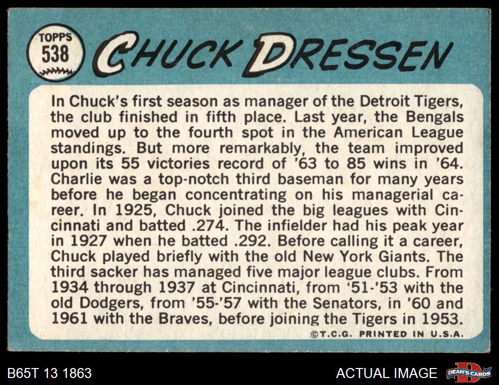 1965 Topps #538 Chuck Dressen 3.5 - VG+