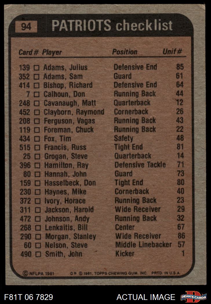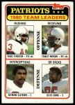 1981 Topps #94 - Vagas Ferguson / Stanley Morgan / Raymond Clayborn / Julius Adams Patriots Leaders & Checklist 4 - VG/EX