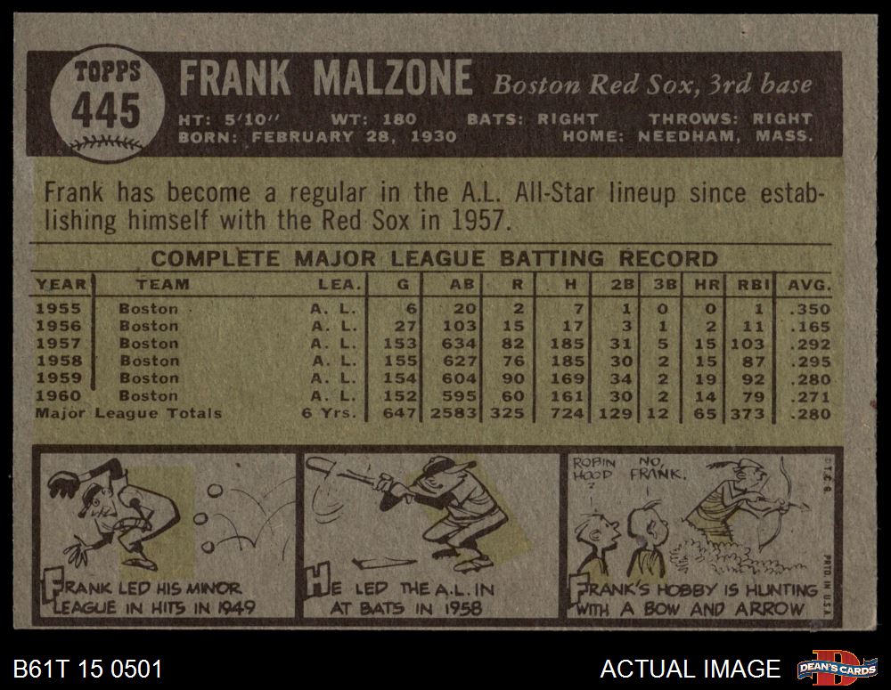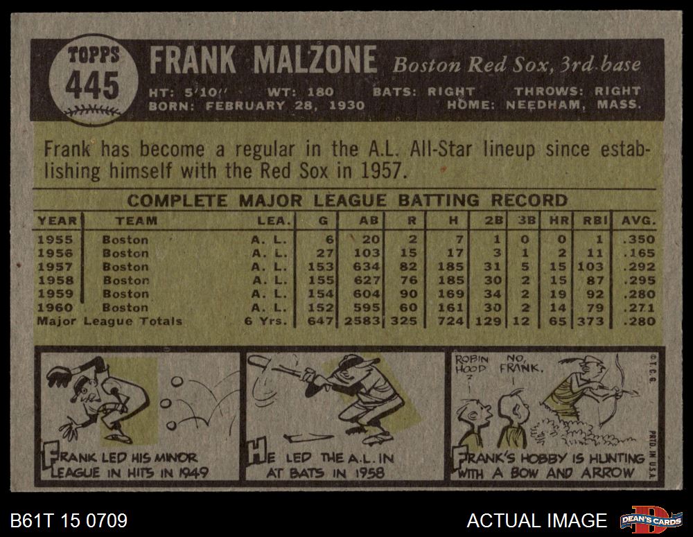 1961 Topps #445 Frank Malzone 5 - EX