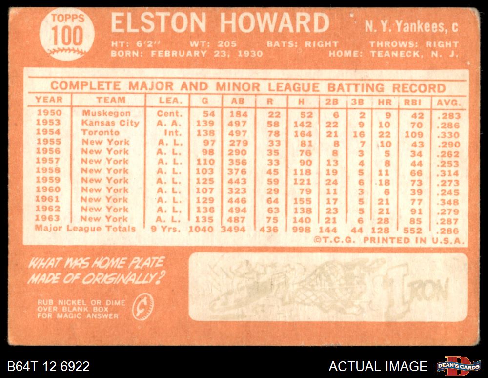 1964 Topps #100 Elston Howard 1.5 - FAIR