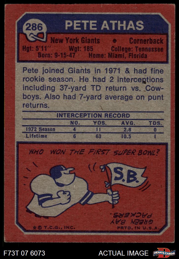 1973 Topps #286 Pete Athas 4 - VG/EX