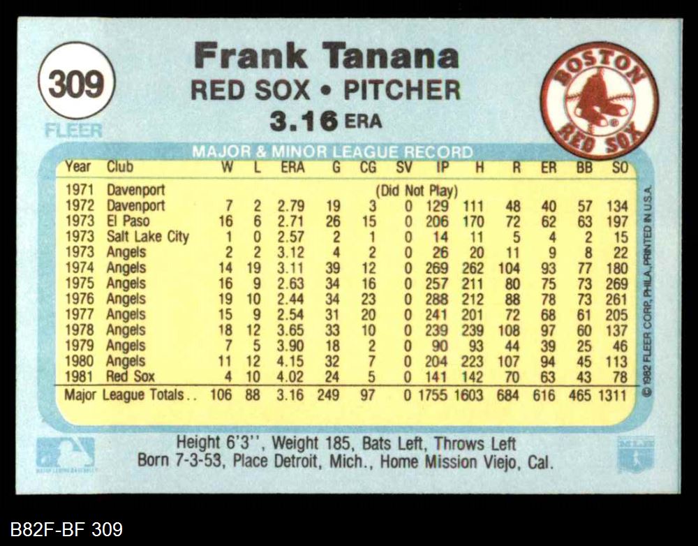 1982 Fleer #309 Frank Tanana 8 - NM/MT