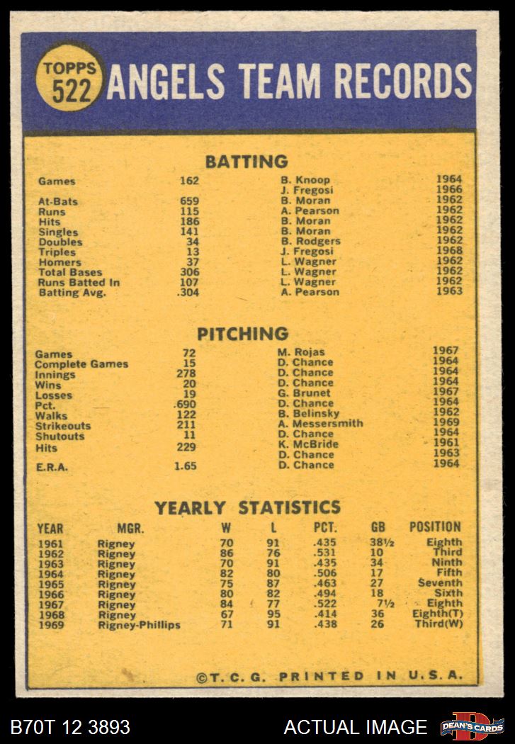 1970 Topps #522 Angels Team