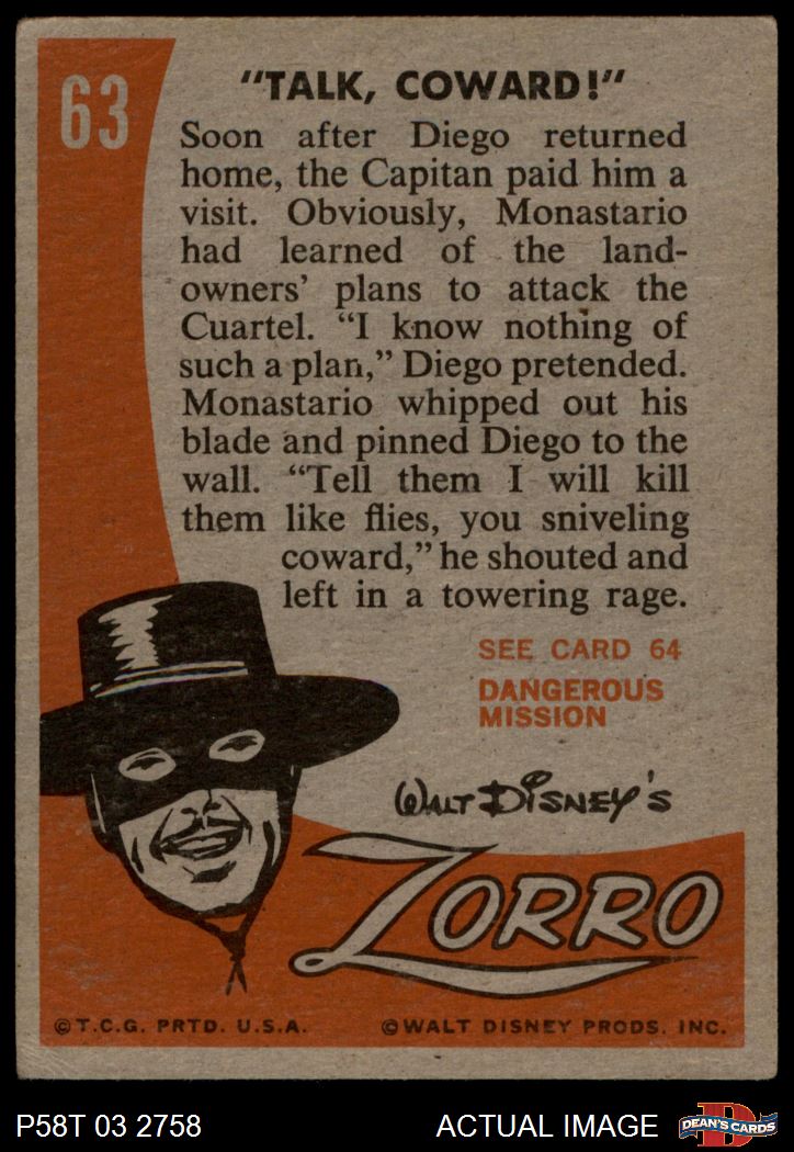 1958 Topps Zorro #63 Talk Coward! 3 - VG