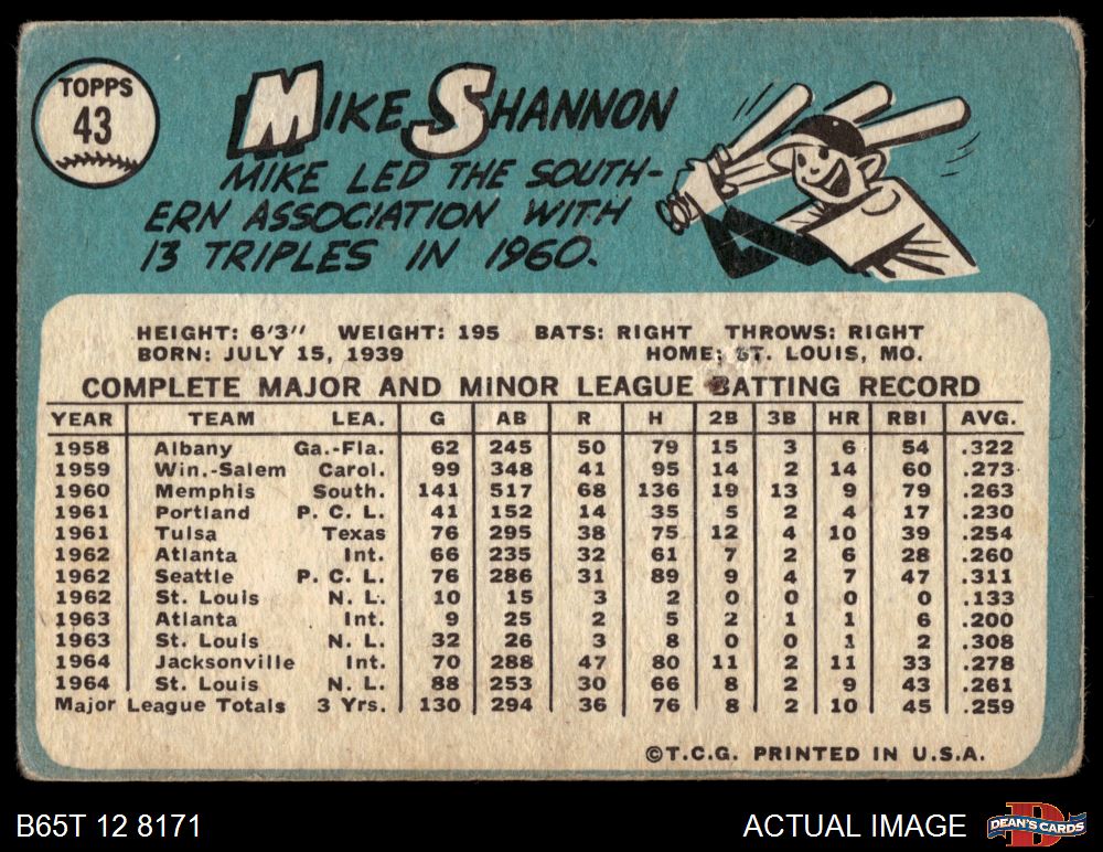 1965 Topps #43 Mike Shannon 1.5 - FAIR