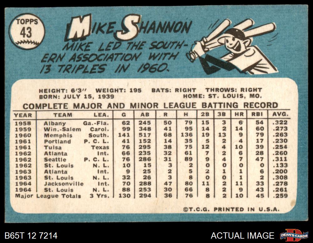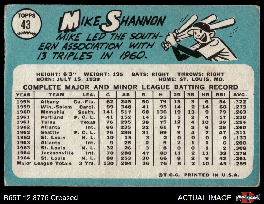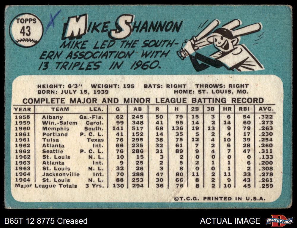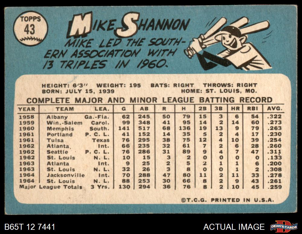 1965 Topps #43 Mike Shannon 2 - GOOD