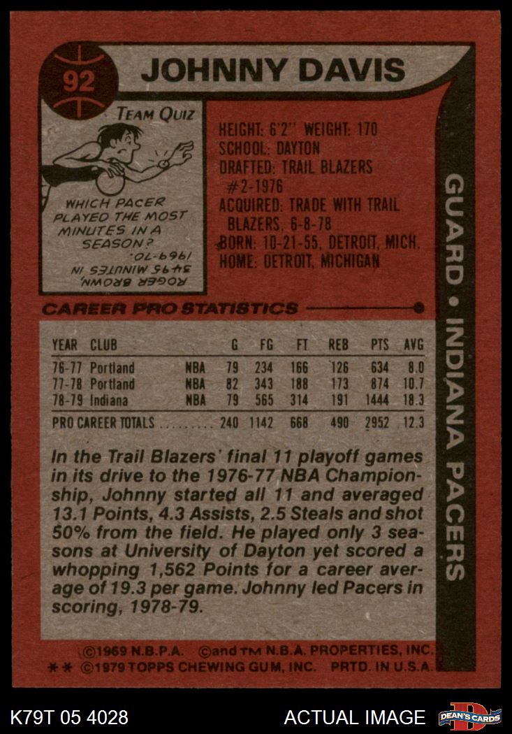 1979 Topps #92 Johnny Davis 7 - NM