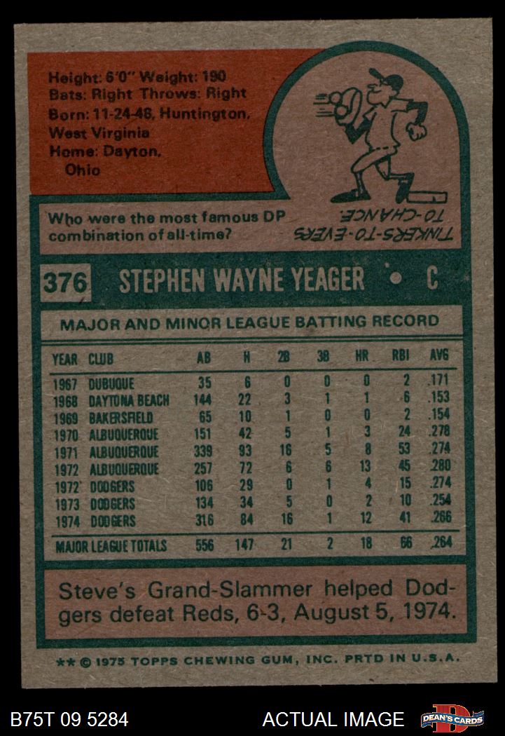 1975 Topps #376 Steve Yeager 7 - NM
