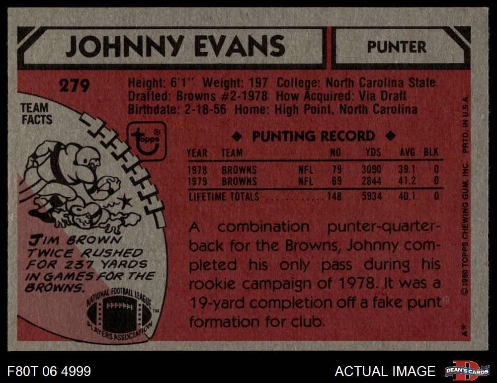 1980 Topps #279 Johnny Evans