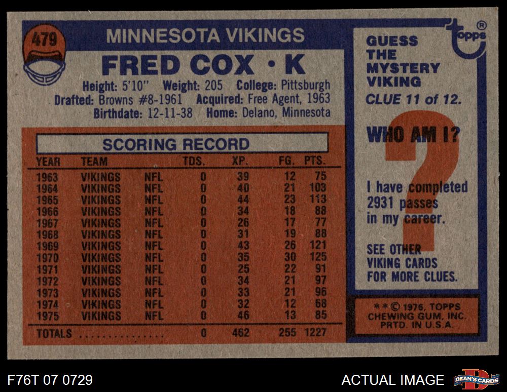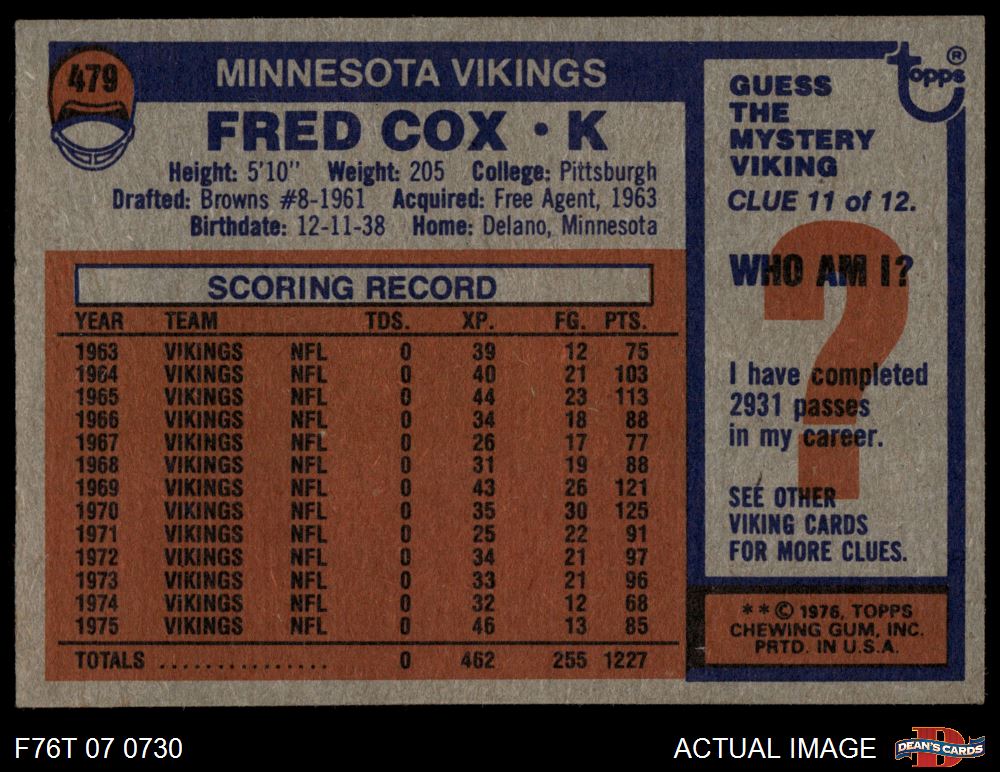 1976 Topps #479 Fred Cox