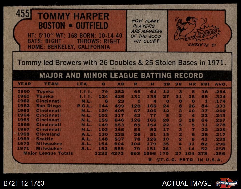 1972 Topps #455 Tommy Harper 6 - EX/MT