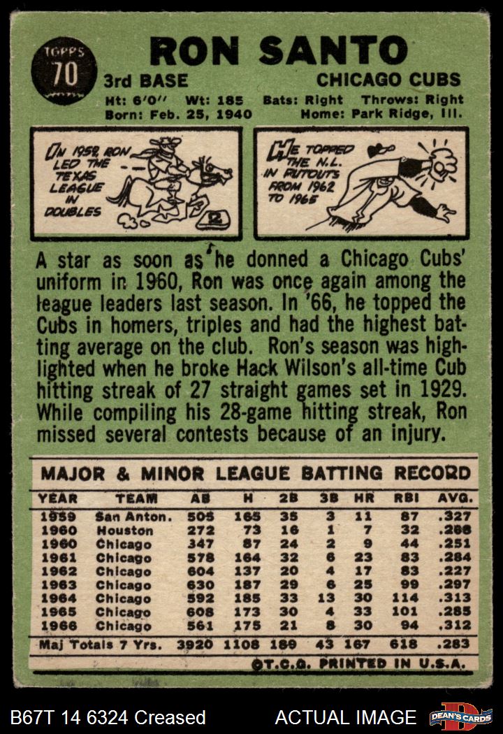 1967 Topps #70 Ron Santo 2.5 - GD+