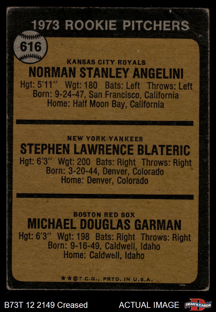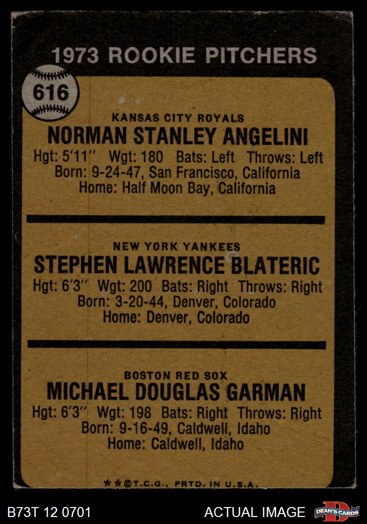 1973 Topps #616 - Norm Angelini / Steve Blateric / Mike Garman Rookie Pitchers 1.5 - FAIR