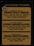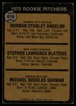 1973 Topps #616  -  Norm Angelini / Steve Blateric / Mike Garman Rookie Pitchers Front Thumbnail