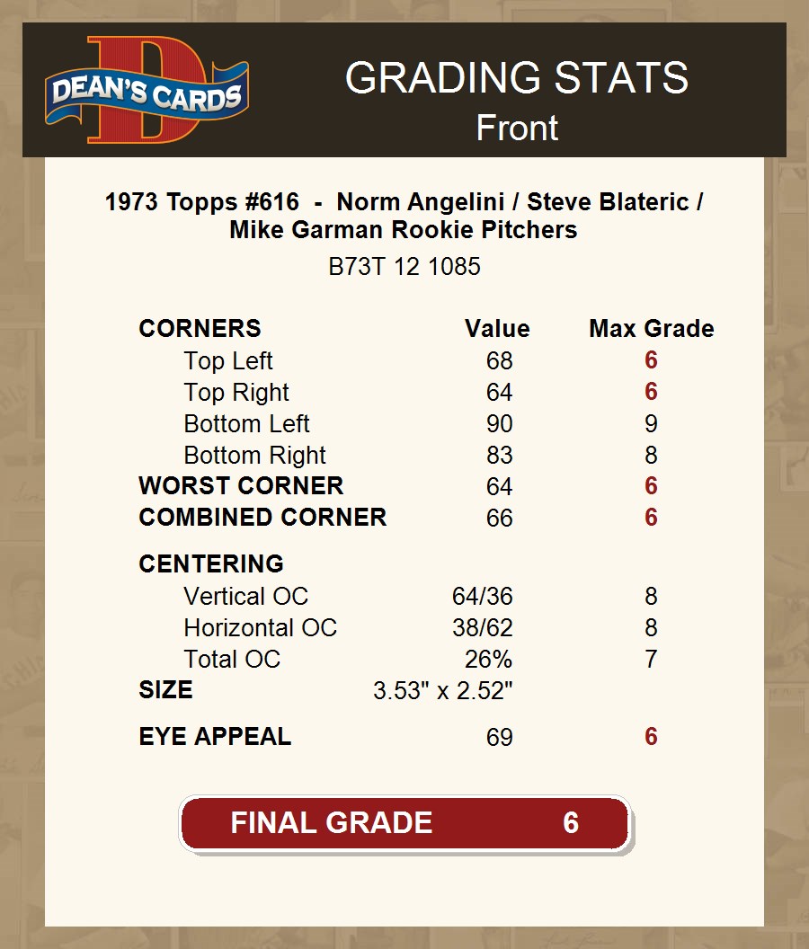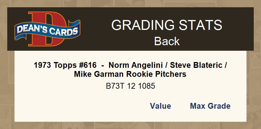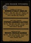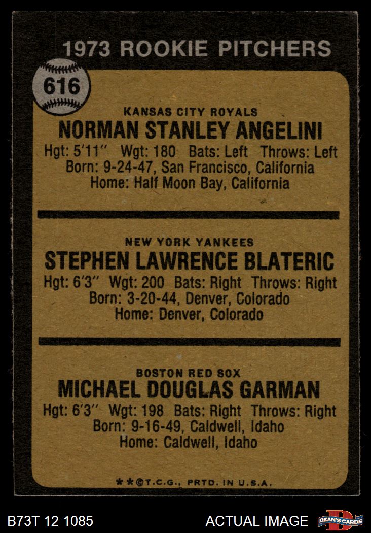 1973 Topps #616 - Norm Angelini / Steve Blateric / Mike Garman Rookie Pitchers 6 - EX/MT