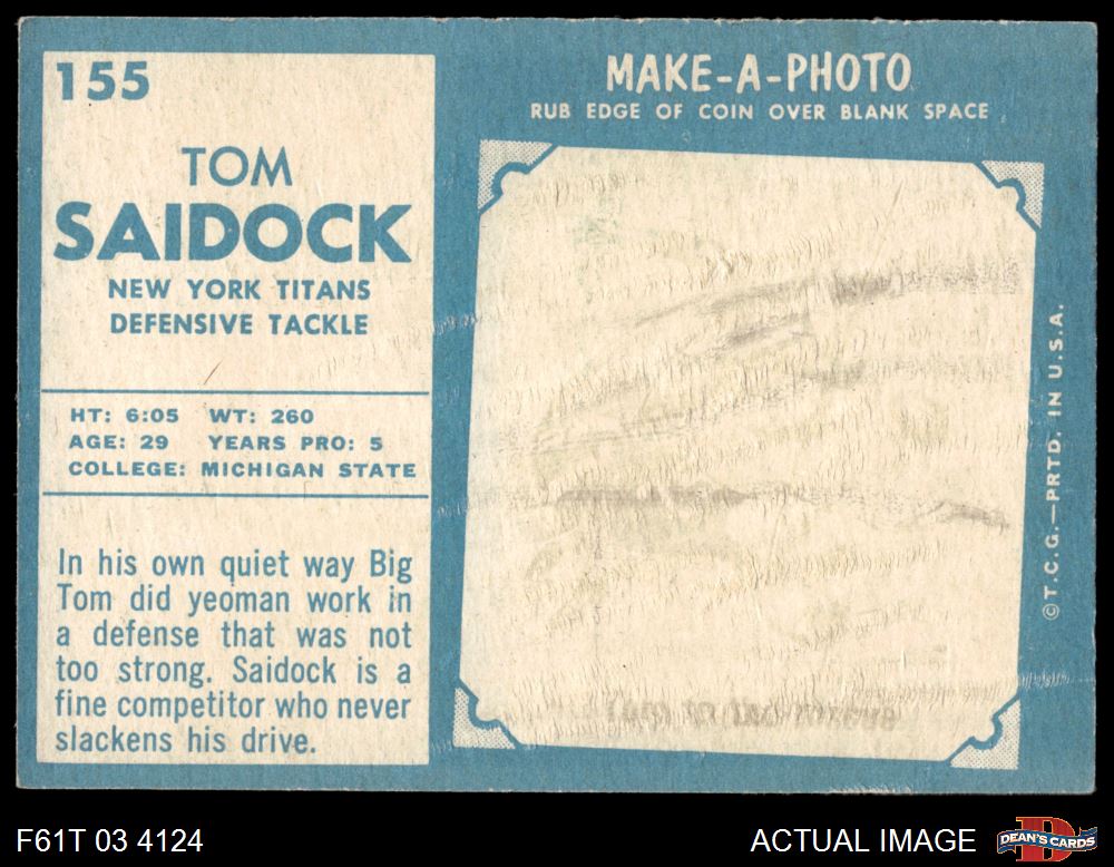 1961 Topps #155 Tom Saidock 3.5 - VG+