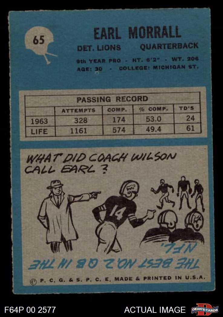 1964 Philadelphia #65 Earl Morrall 2 - GOOD