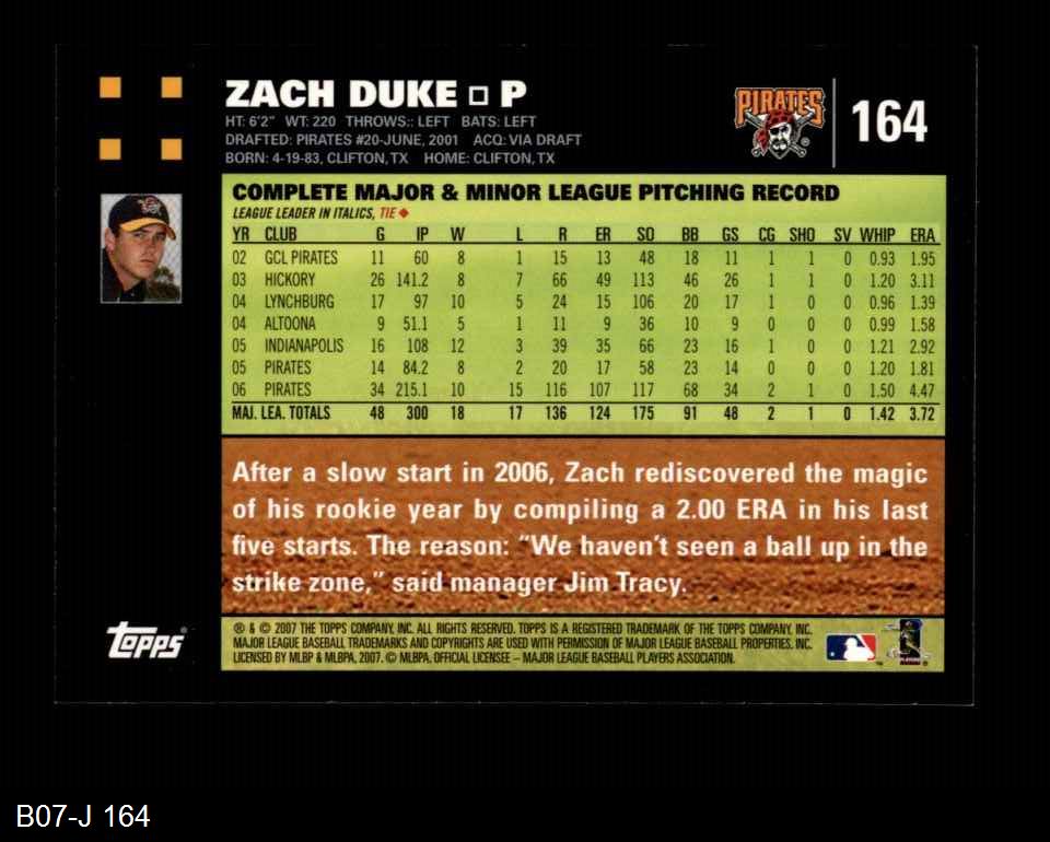 2007 Topps #164 Zach Duke 8 - NM/MT