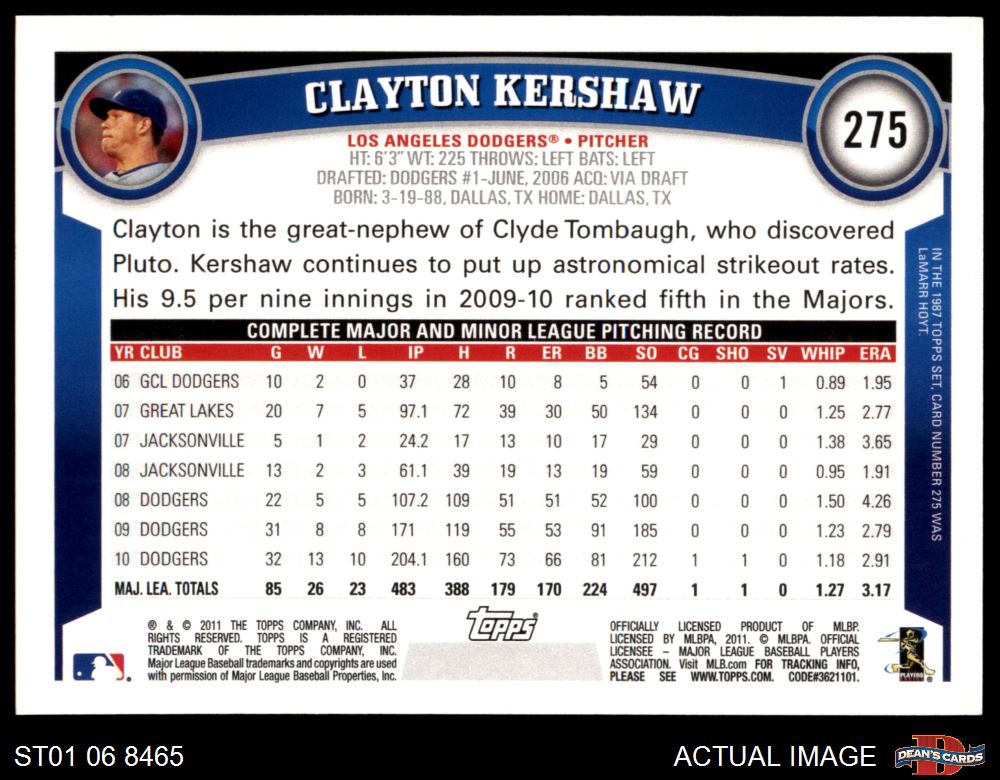 2011 Topps #275 Clayton Kershaw