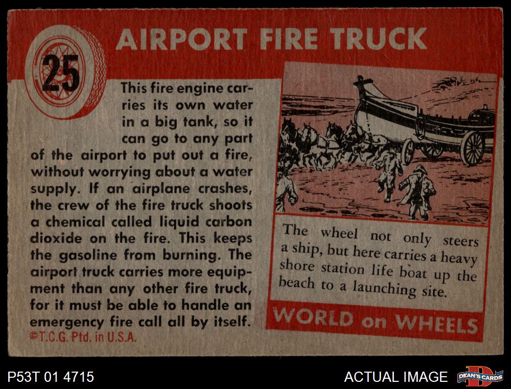 1954 Topps World on Wheels #25 Airport Fire Truck 4 - VG/EX