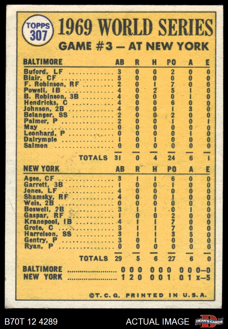 1970 Topps #307 - Tommie Agee 1969 World Series - Game #3 - Agee's Catch Saves the Day 5 - EX