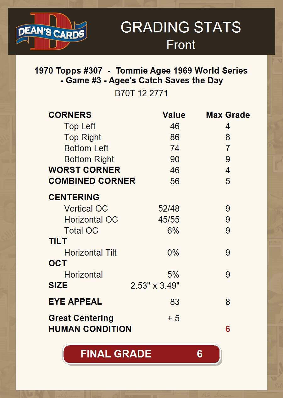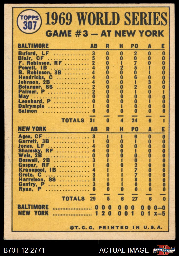 1970 Topps #307 - Tommie Agee 1969 World Series - Game #3 - Agee's Catch Saves the Day 6 - EX/MT