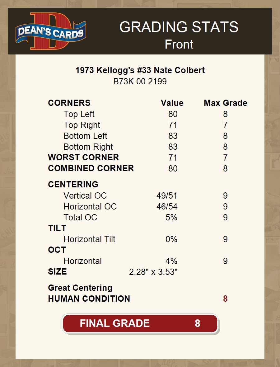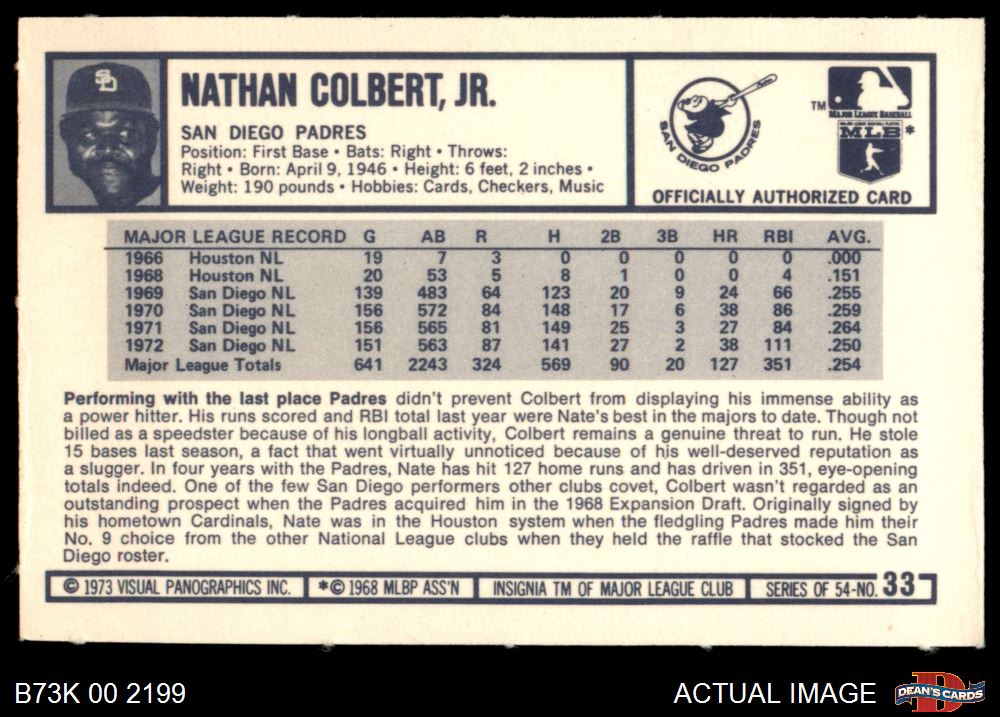 1973 Kellogg's #33 Nate Colbert 8 - NM/MT