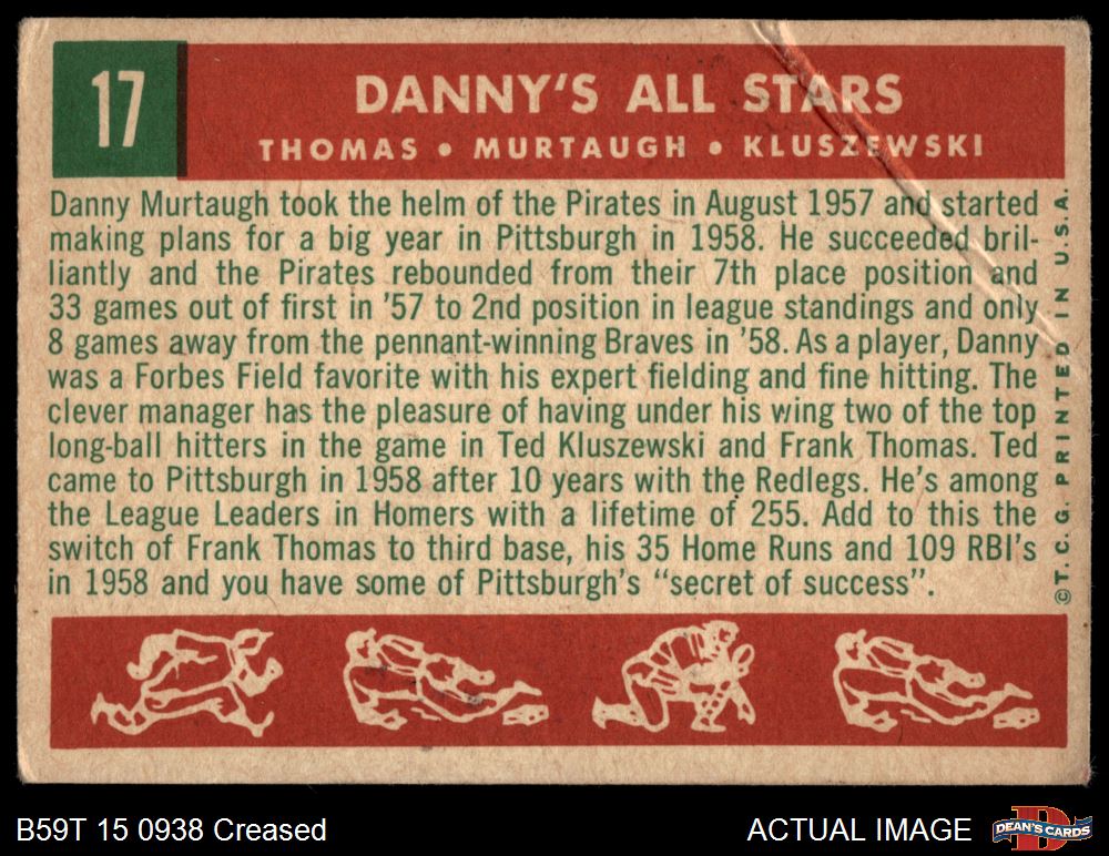 1959 Topps #17 - Frank Thomas / Ted Kluszewski / Danny Murtaugh Danny's All-Stars 2 - GOOD