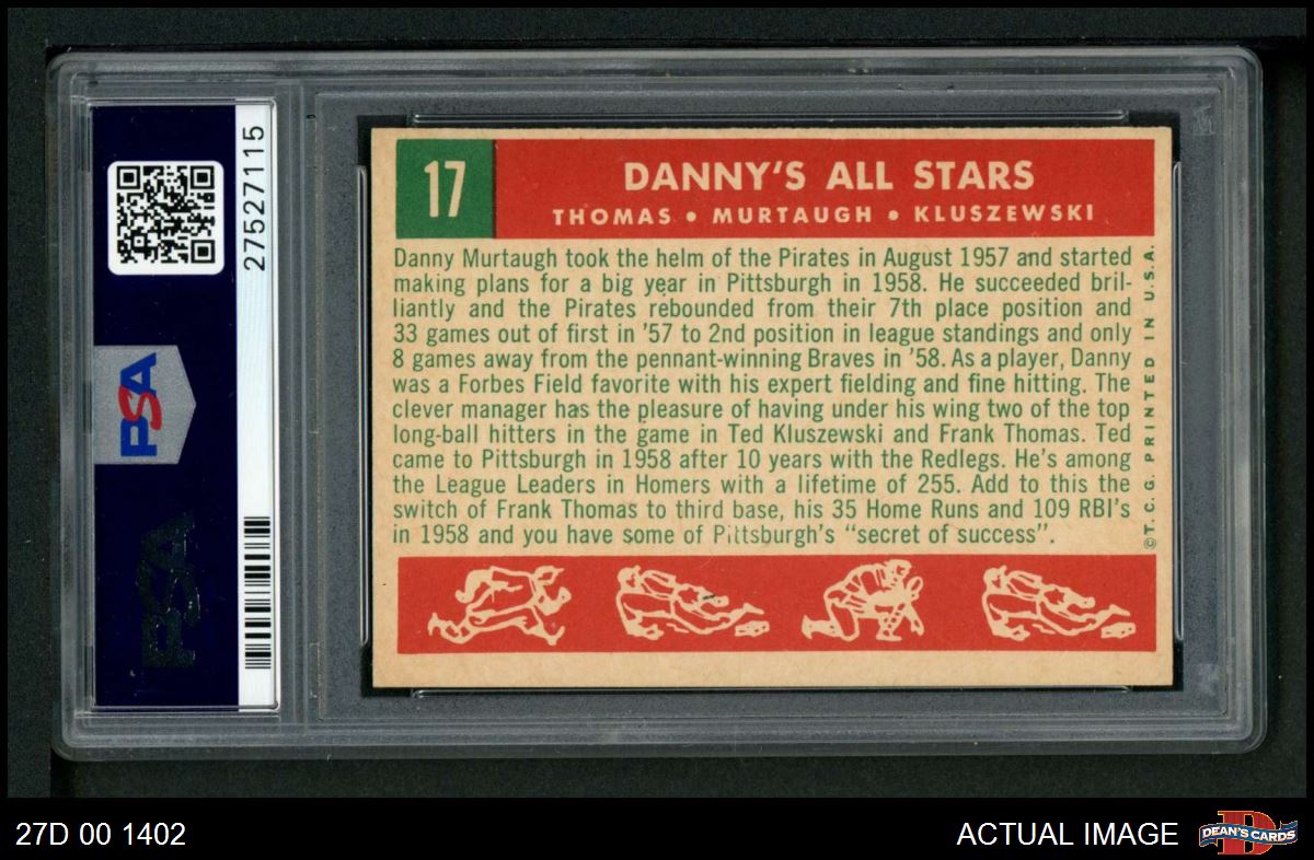 1959 Topps #17 - Frank Thomas / Ted Kluszewski / Danny Murtaugh Danny's All-Stars PSA 7 - NM