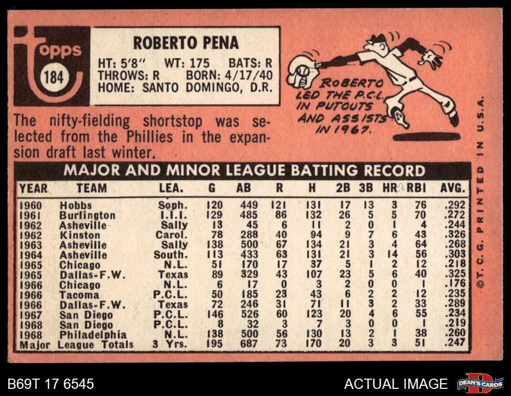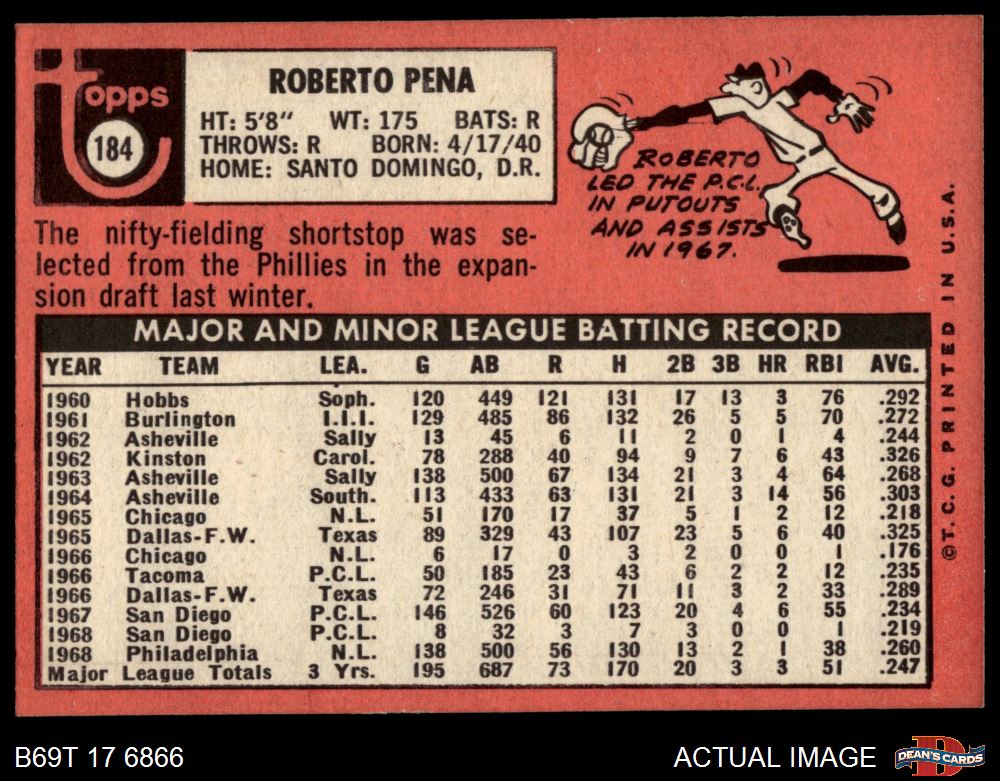 1969 Topps #184 Roberto Pena