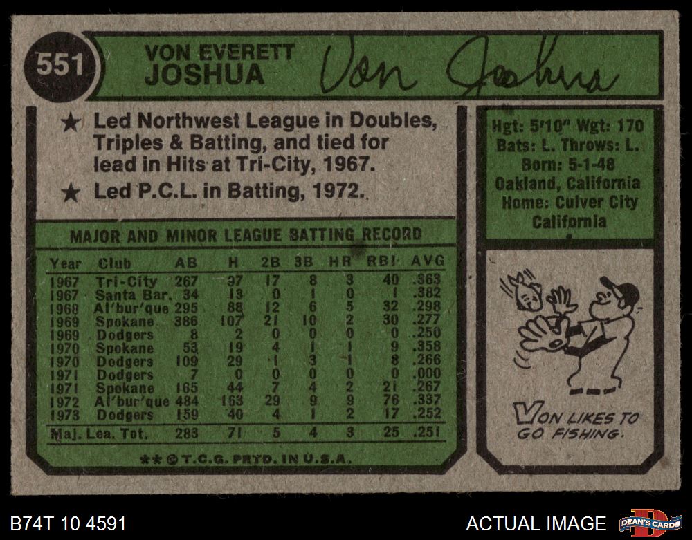 1974 Topps #551 Von Joshua 4 - VG/EX